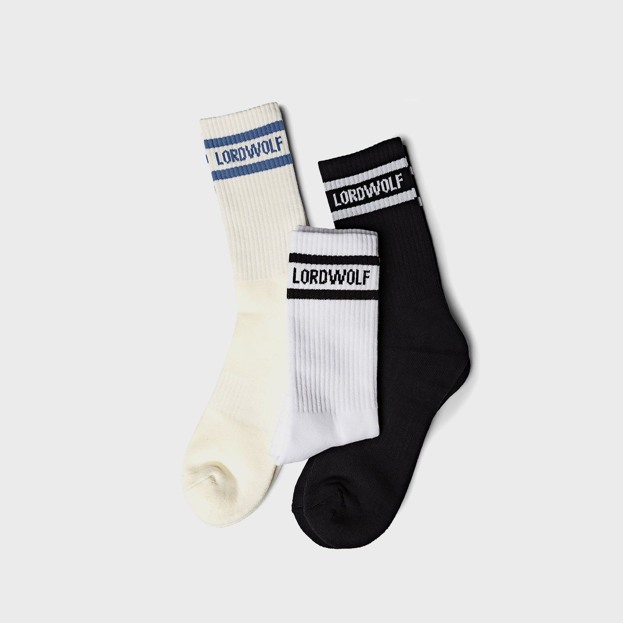 Design: Three-pair pack featuring “LW” logo