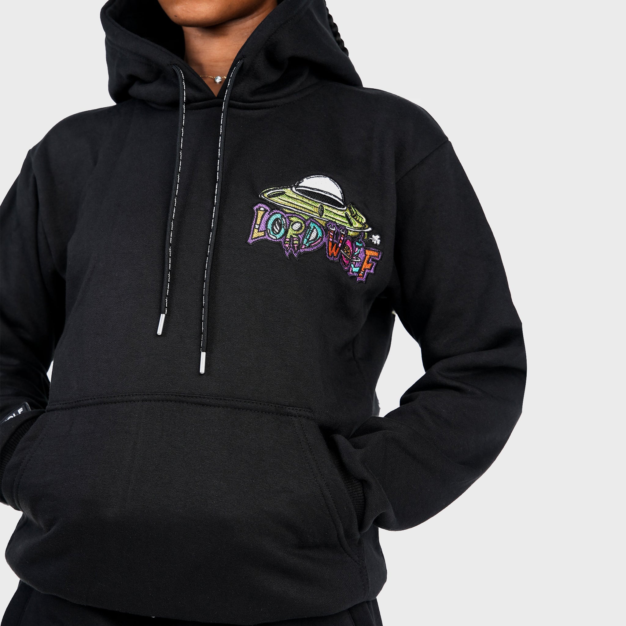 A heavyweight hoodie with sci-fi inspired oversized embroidery.