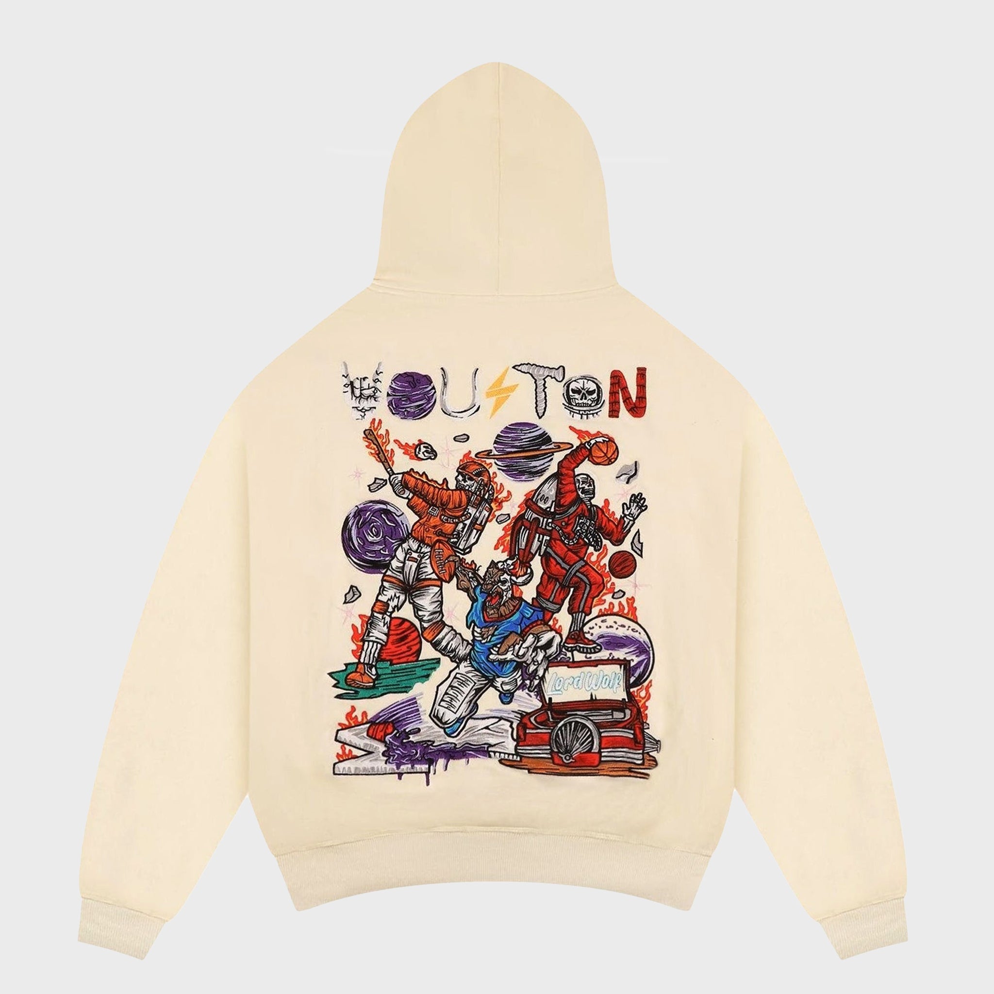 Houston Embroidered Drop-Shoulder Hoodie – Off White