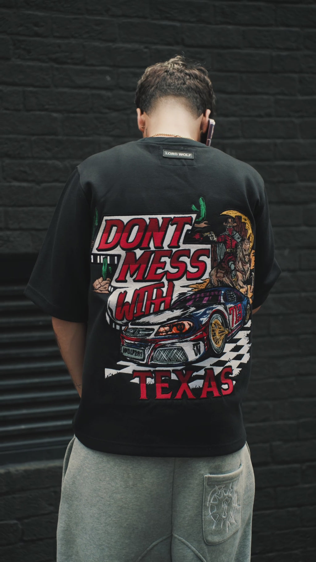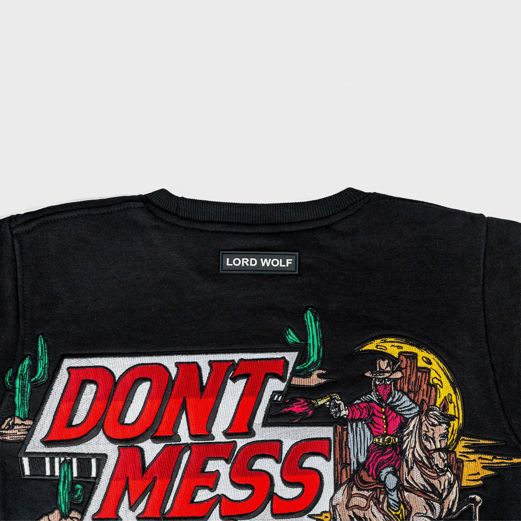 - Oversized back embroidery with “Don’t Mess With Texas” slogan