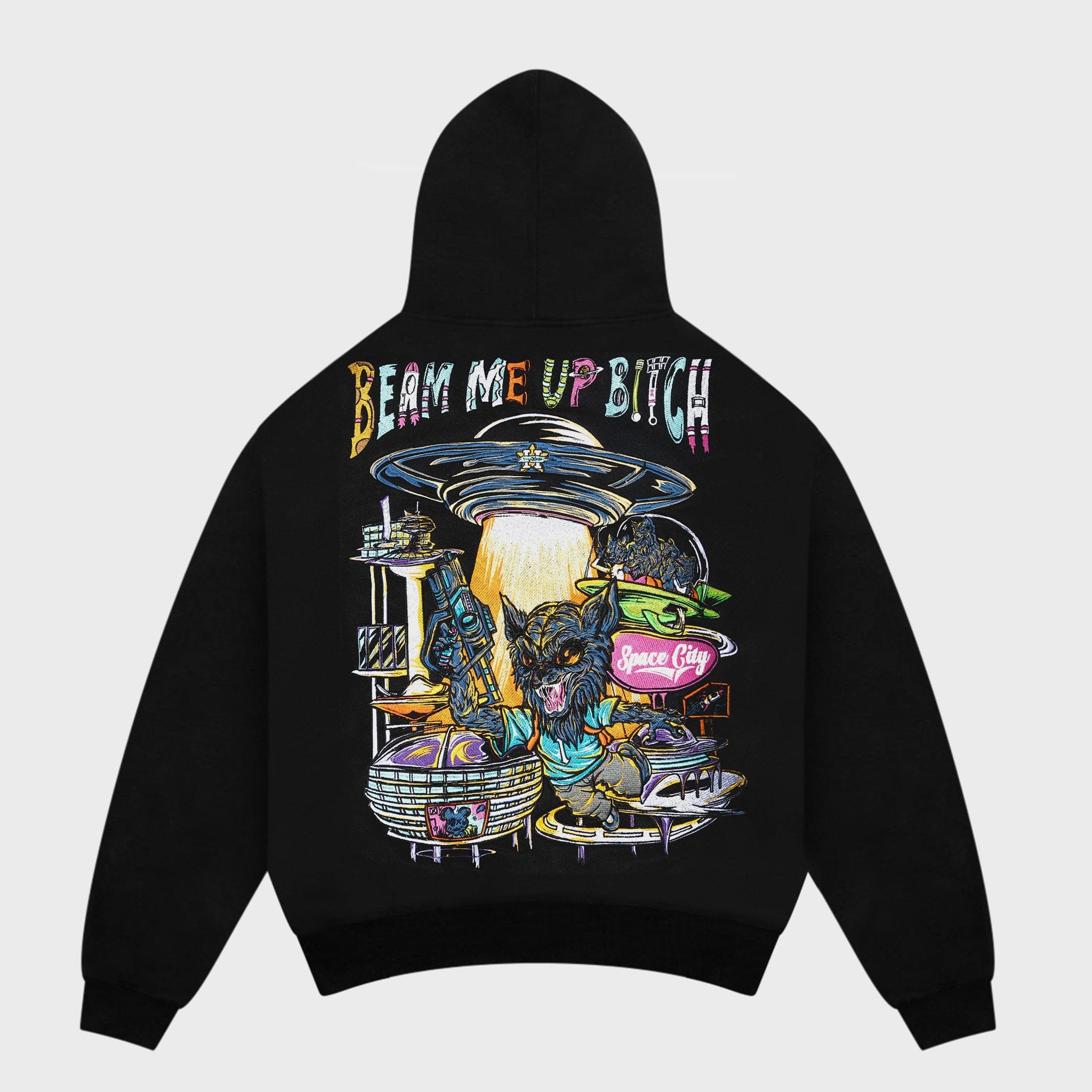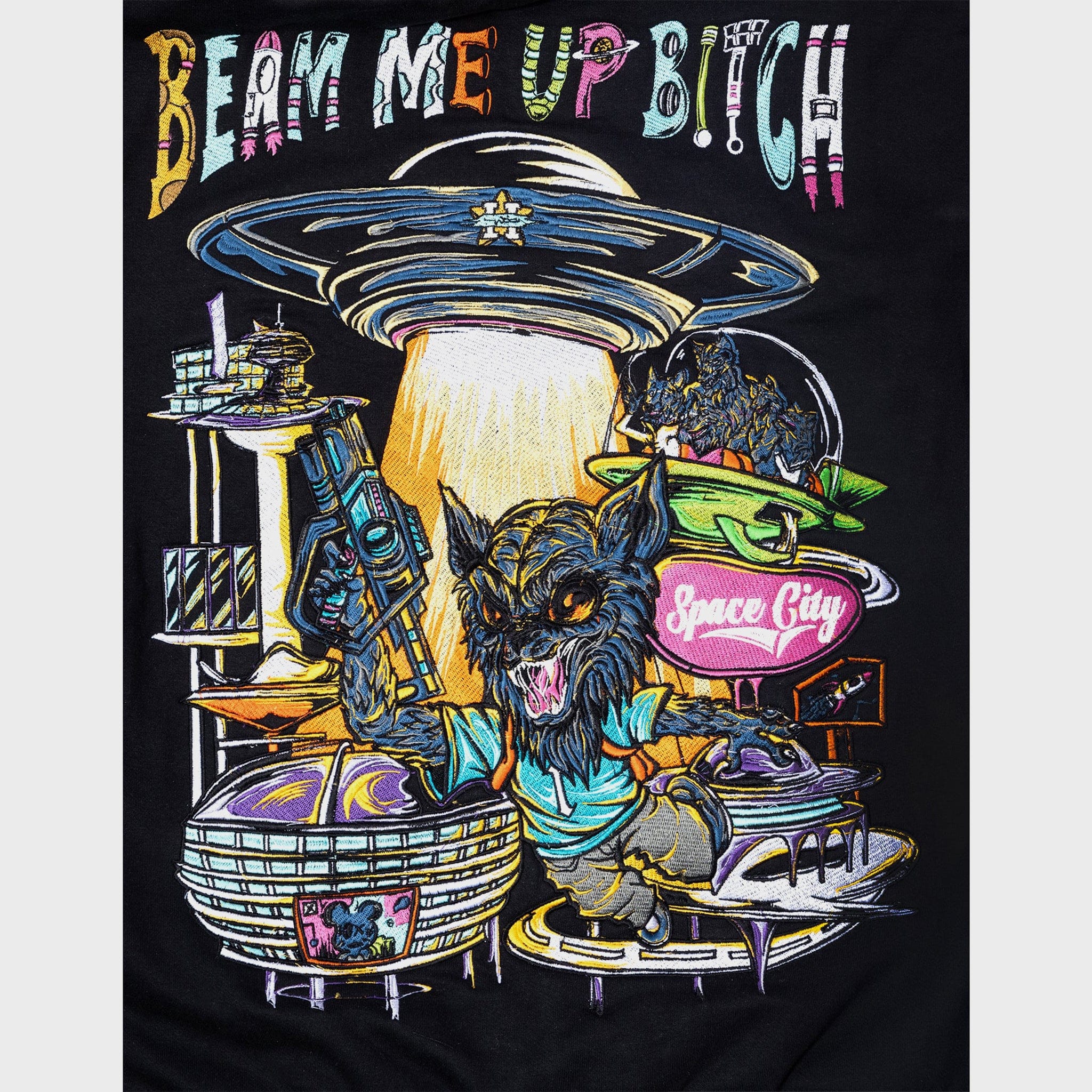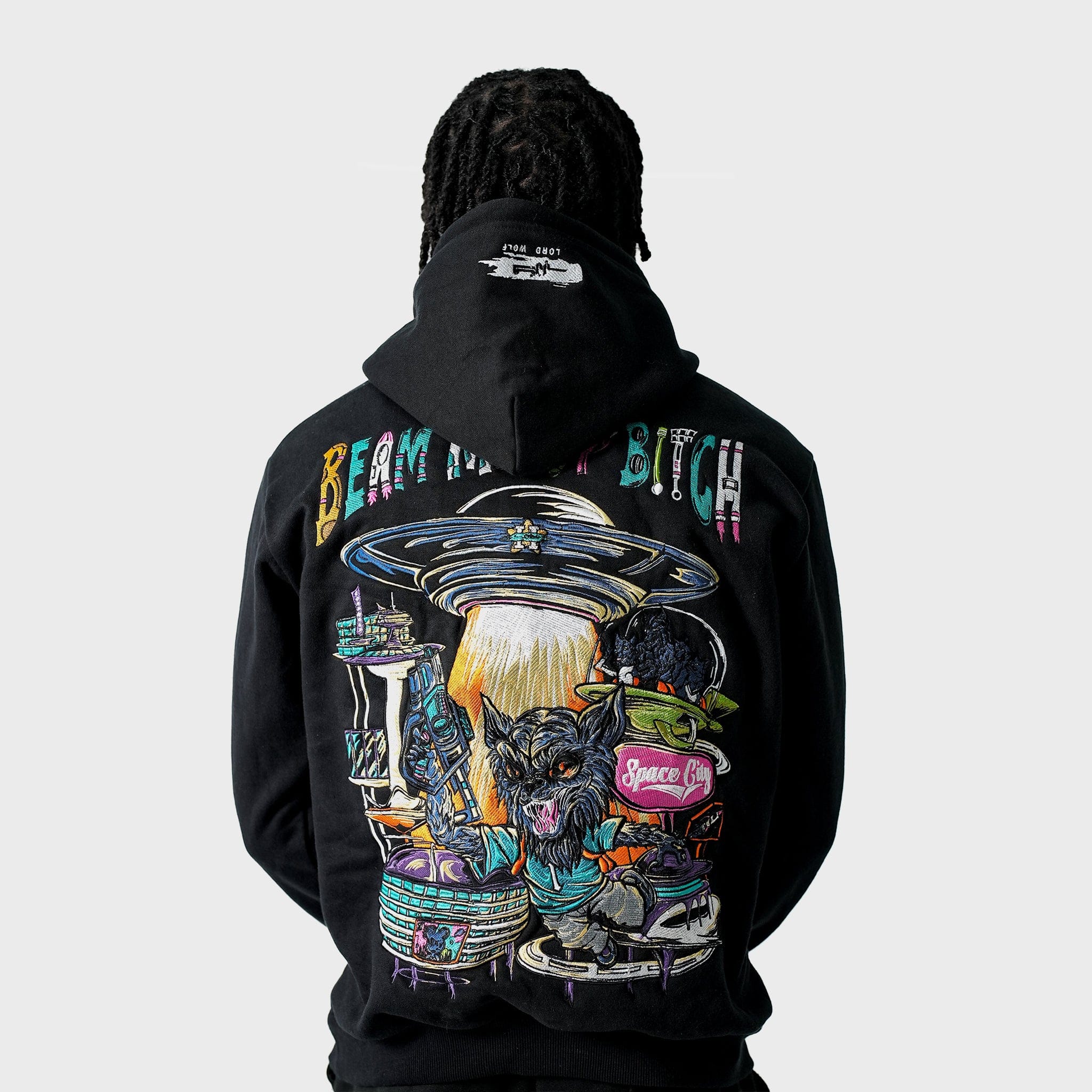 A heavyweight hoodie with sci-fi inspired oversized embroidery.