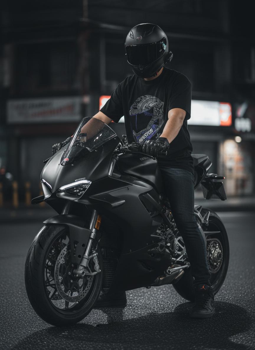 Cut from 100% organic cotton jersey, the Midnight Rider pairs a relaxed crew-neck fit with a bold helmet graphic. A limited-edition piece, produced in-house and rooted in Houston’s underground culture.
