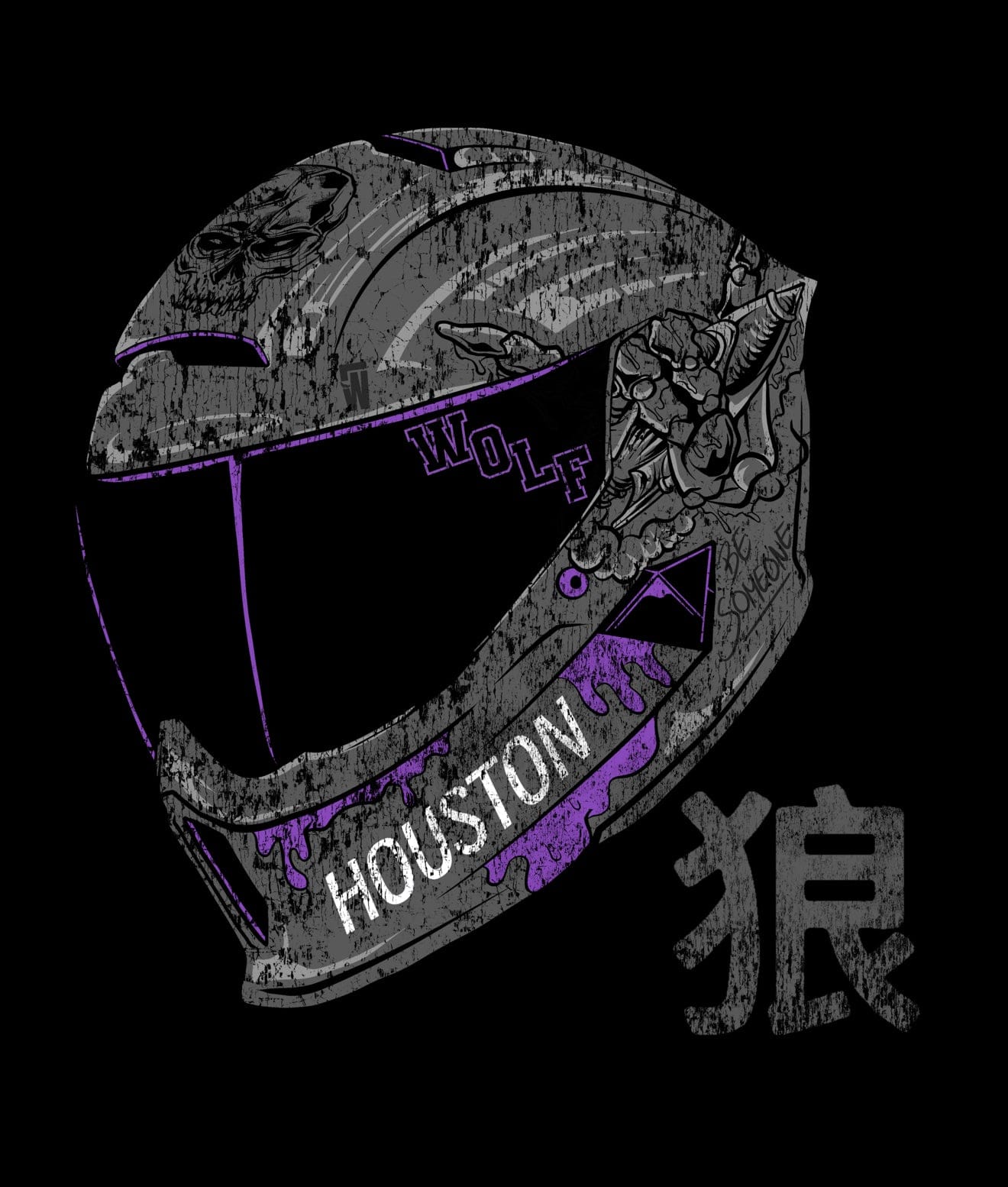 - Design: Helmet graphic on front