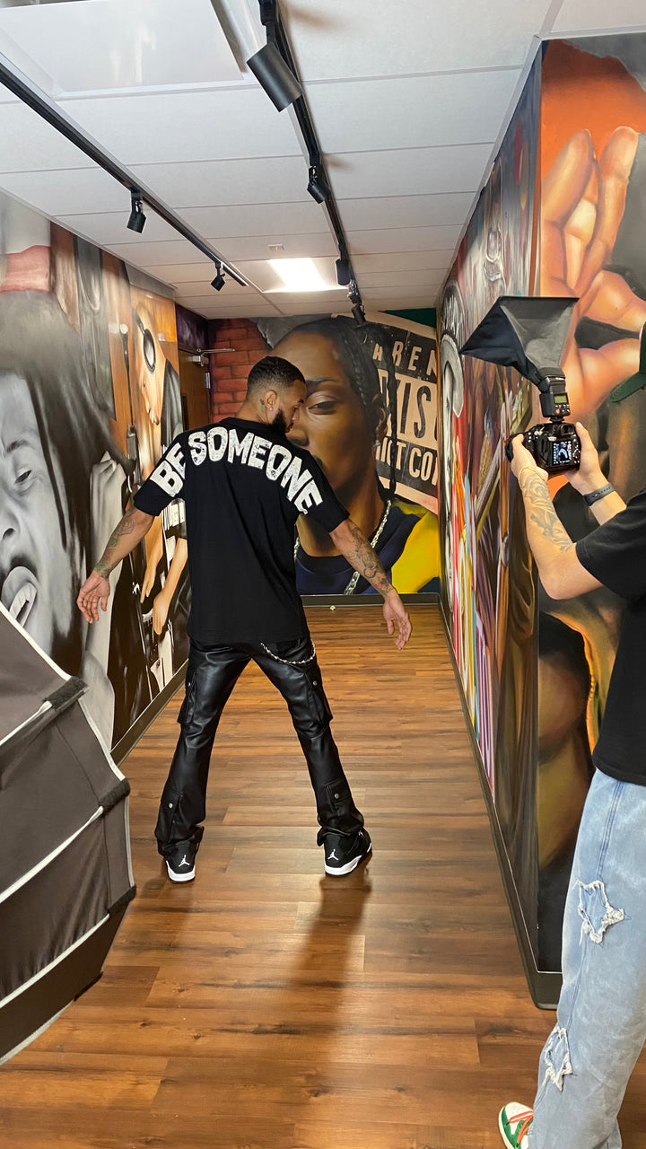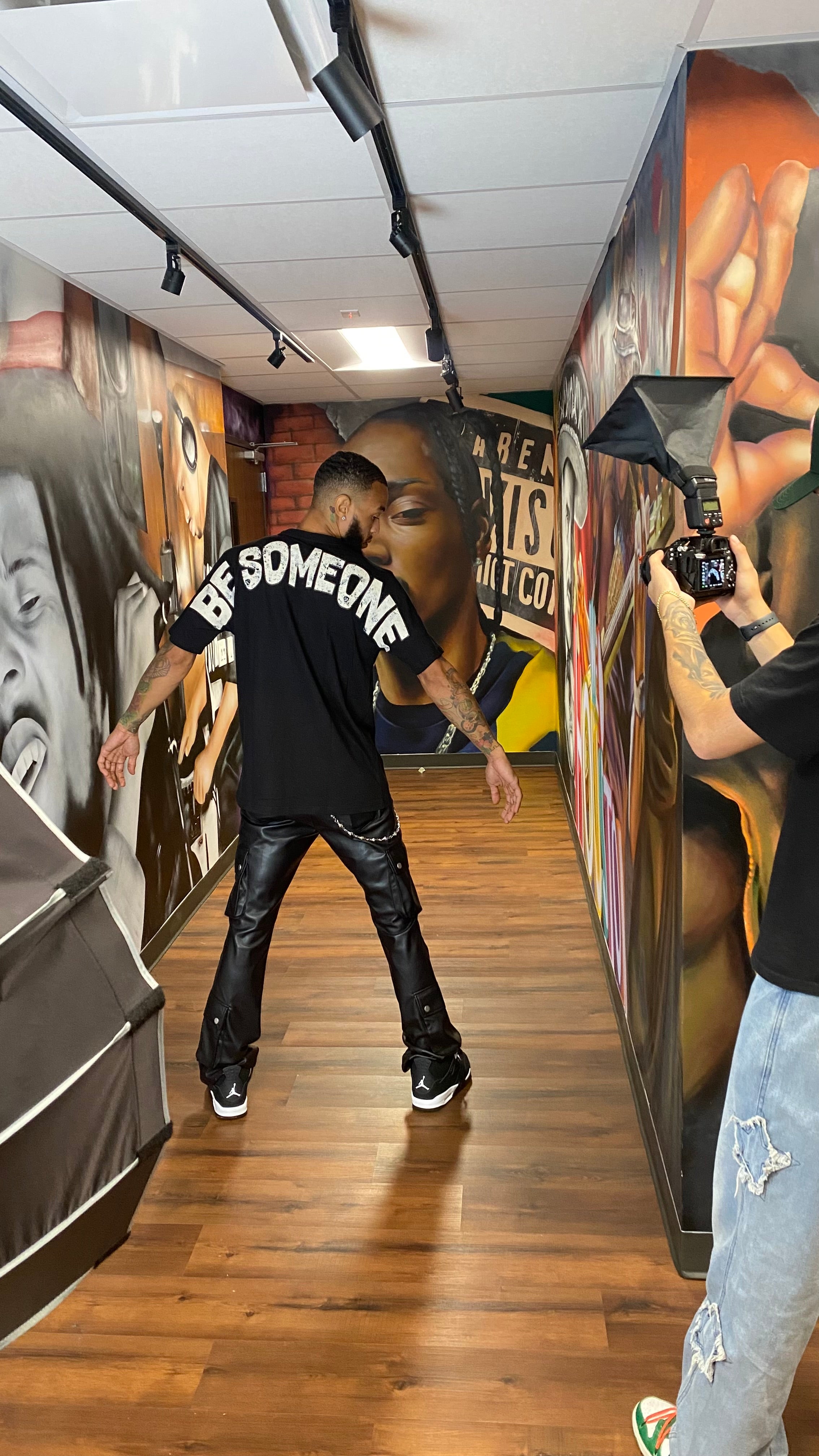 Design: Bold “713 Be Someone” graphic front and back, referencing Houston pride