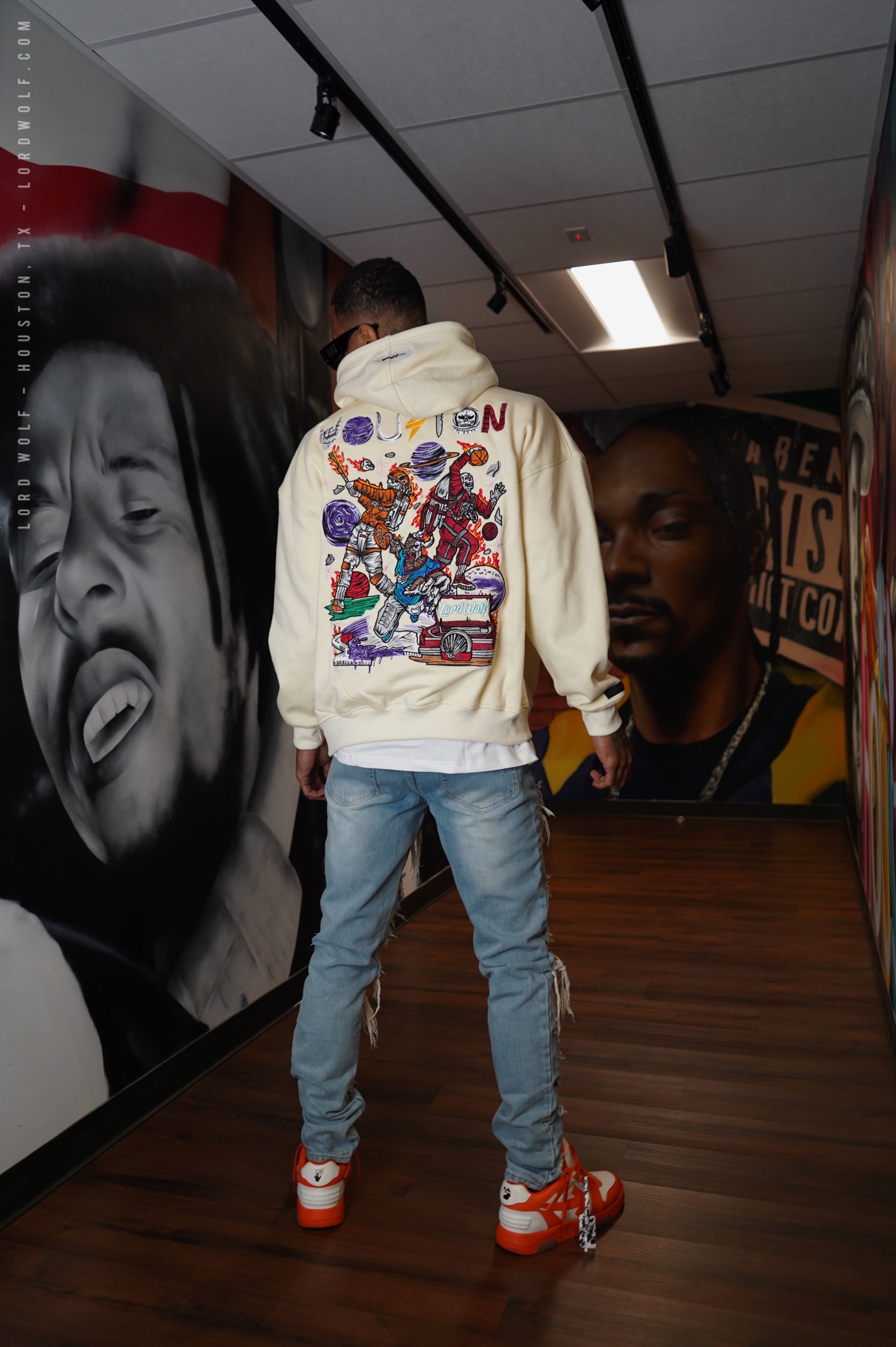 Houston Embroidered Drop-Shoulder Hoodie – Off White