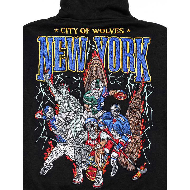 Design: Embroidered “City of Wolves” logo on chest fully embroidered on back